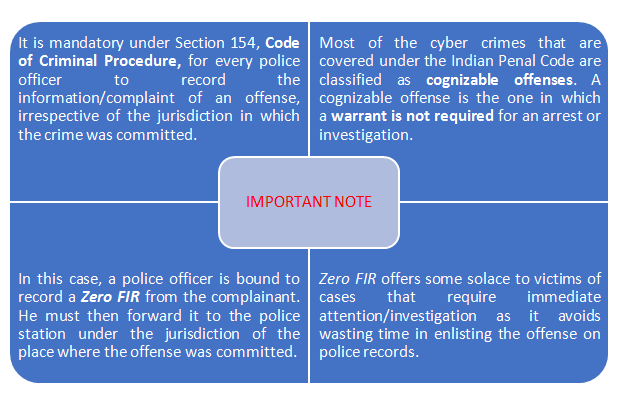 There are initiatives taken by some of the State’s cyber cell police stations by providing an online platform to the victims of cybercrimes to file a complaint even though from remote places and never bothering themselves, physically. (please refer www.cybercrime.gov.in)