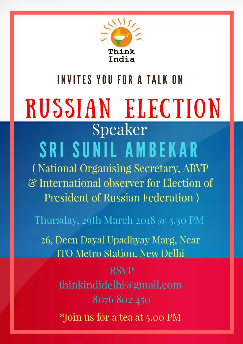 Think India Delhi invites You for a talk on RUSSIAN ELECTION
